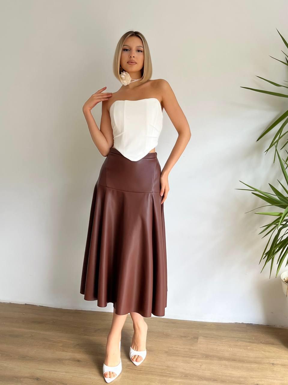 Kadın Abiye Parlak Yumuşak Deri Kumaş Cepsiz Vegan Deri Etek - Abiye & Mezuniyet Elbisesi
